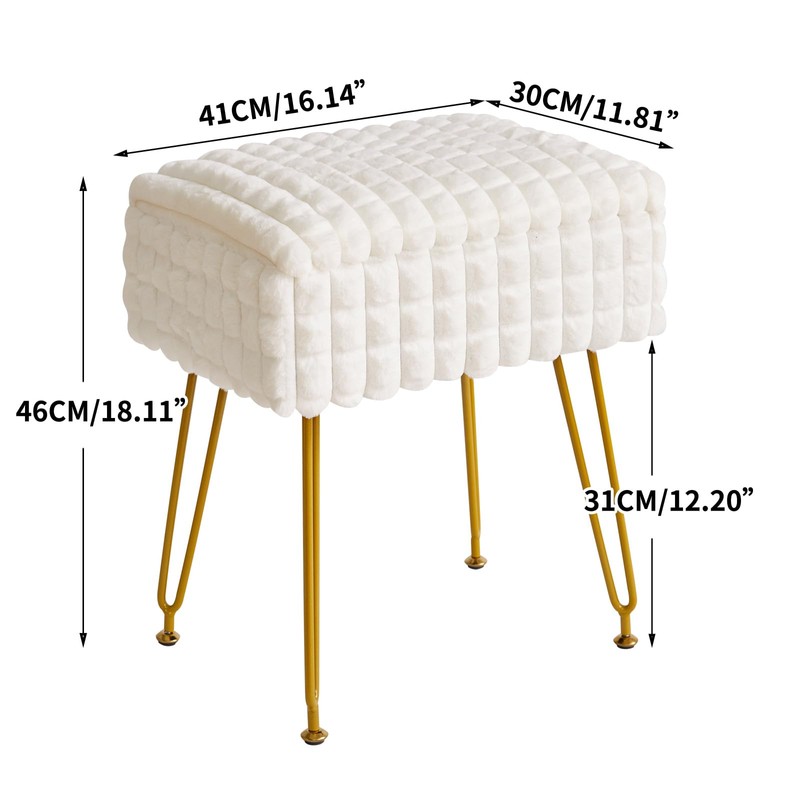 IBUYKE Rectangle Vanity Chair with Storage Space, Footrest Footstool Ottoman, Vanity Stool, Dressing Table Chair, with Anti-Slip Feet, for Makeup Room, Bedroom, Square Grid Pattern, White WBD004W