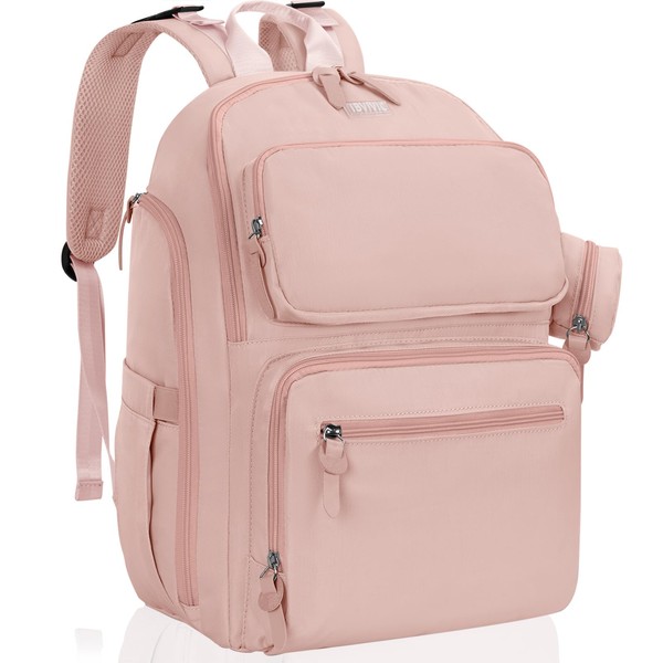 IBVIVIC Diaper Bag Large Capacity Diaper Backpack Multi-Function Baby Diaper Bag For Dad And Mom With Insulated Pockets, Stroller Straps, Pink
