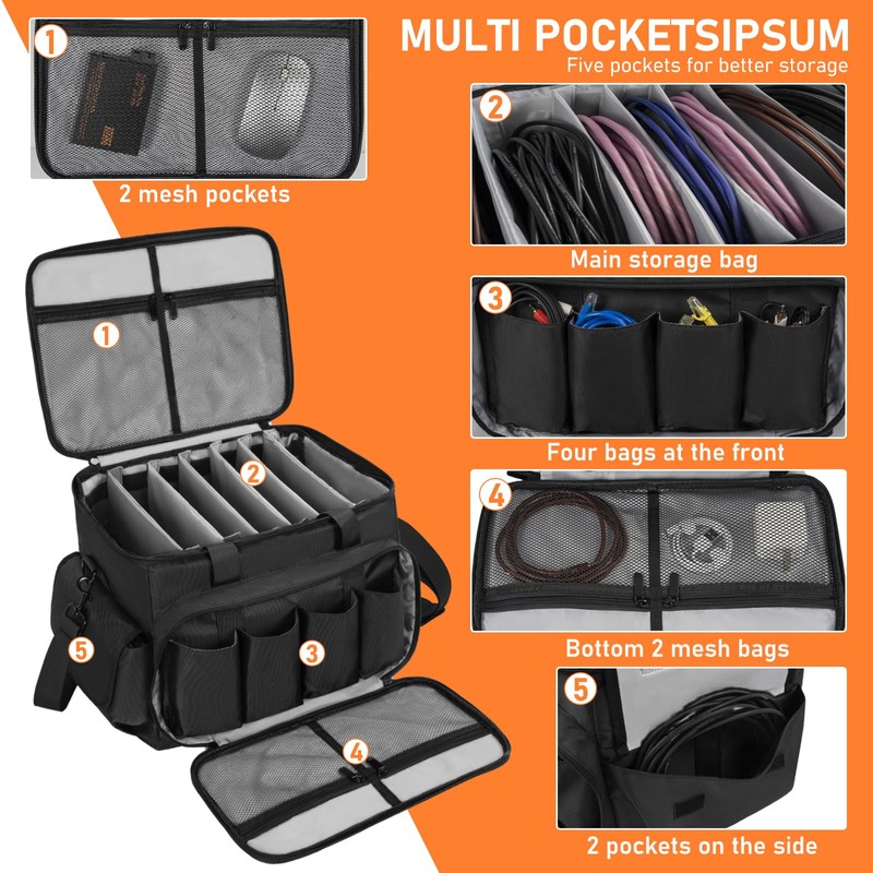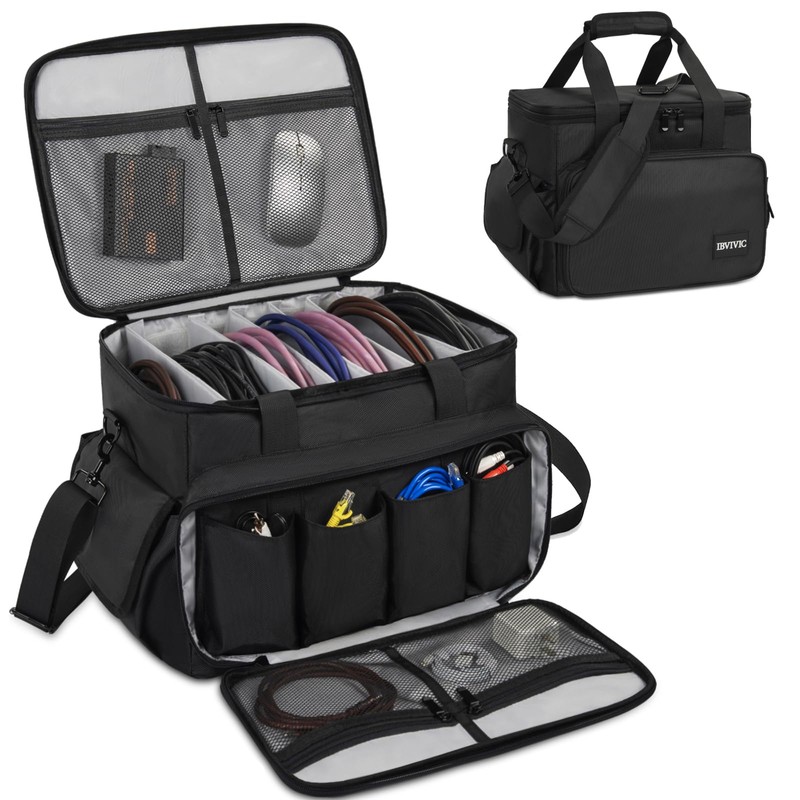 - 【2 Carrying Ways for Travel】Our portable cable bag Comes with reinforced handles and adjustable shoulder strap. You can switch 2 kinds of carrying methods at any time.A great DJ Cable File organizer bag for business trip and daily use