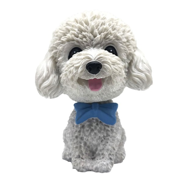 IBWell Mini Bobbing-Head Dog for Car Dash Board Decor,Dashboard Doggy Puppy Teddy Toy with Adhesive Tab(Poodle) (White)