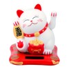 IBWell Small Lucky Cat Waving Arm Chinese Lucky Cat Statue for Home Office Car Decor Solar Energy Powered Chinese Feng Shui Cat Beckoning Cat - White