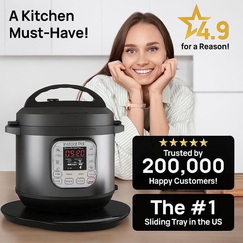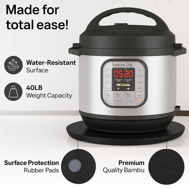 - π πππ ππππππππππ ππππππ: The Ibyx round sliding appliance tray quickly and quietly rolls back and forth as far as you need to reorganize your kitchen countertop. Pull your pressure cooker or air fryer out from under the cabinet. This is a must have kitchen tool to organize our countertop and move your frequently used appliances without doing any heavy lifting.