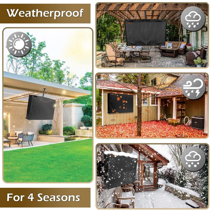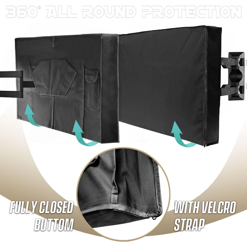 - 360° PROTECTION: Full cover with bottom sealed. Hook-and-loop straps ensure the strong firm stick of the outdoor TV cover. There are two transparent films on both corners interior that have a good fixation effect to prevent the cover from falling off. Give your television a perfect full protection.