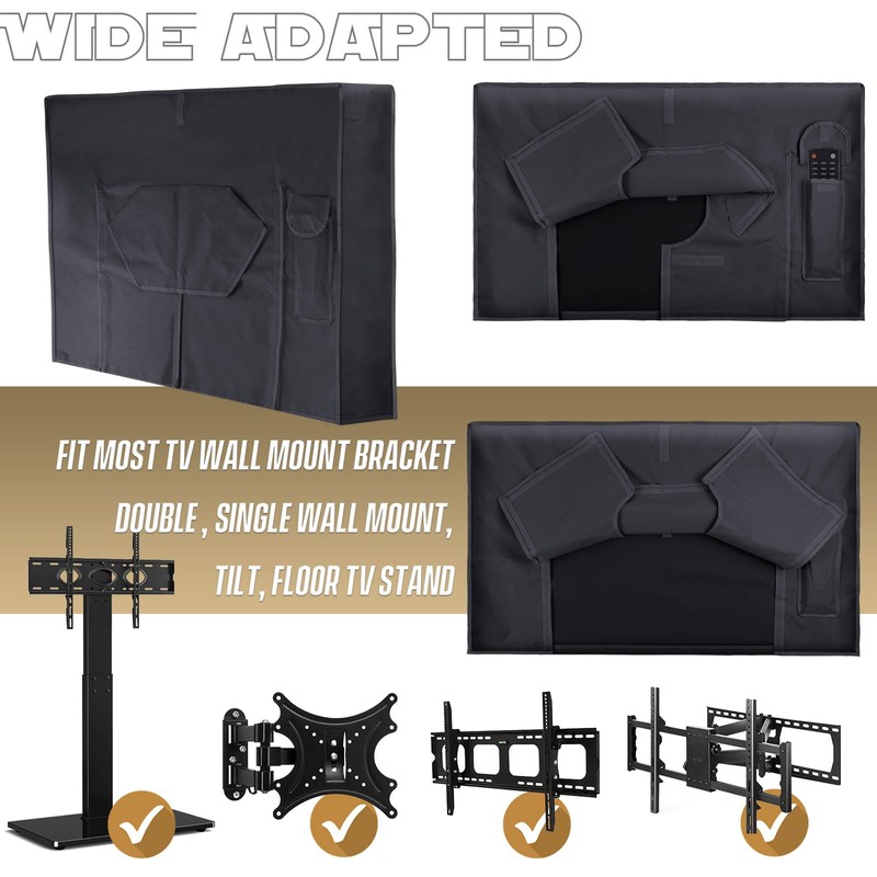 - TV MOUNT COMPATIBLE: The smart design of three-flap at the rear allows the TV cover to fit most universal TV wall mount brackets, double wall, single wall mount and stand. Besides, you can store your remote control in the pocket behind when you don't use it which is often difficult to find at usual.