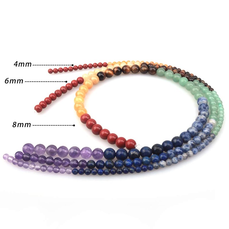 - v Contains 7 kinds of beads: Amethyst, Lapis Lazuli, Blue Jasper, Green Aventurine, Tiger eye, Yellow Jade, Red jasper