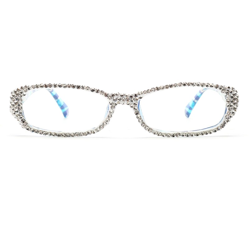 - Classic shape fashion frame reading glasses updated with gorgeous diamonds and a fun colorful design for a fresh look. Universal size fits most face shapes.
