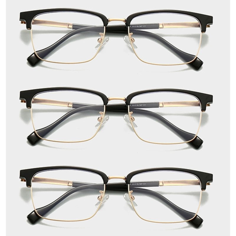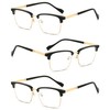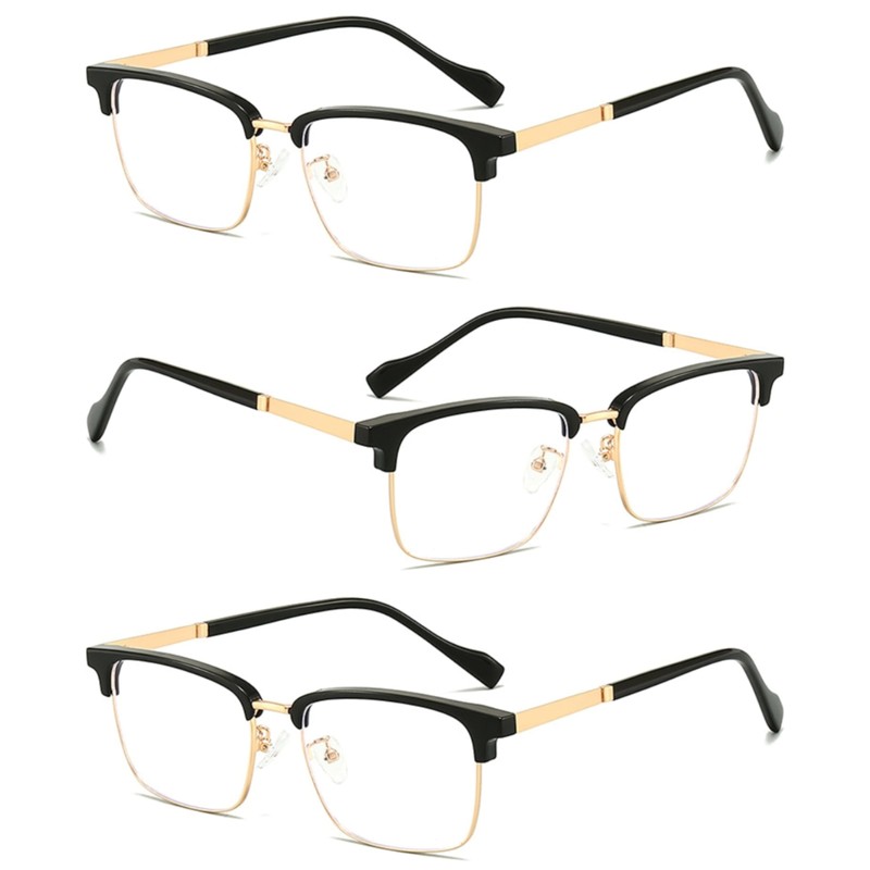 ICARA Blue Light Blocking Reading Glasses for Men, Half Frame Metal Readers Spring Hinge Eyeglasses Anti Eyestrain/Glare/UV (Black gold, 2, x)
