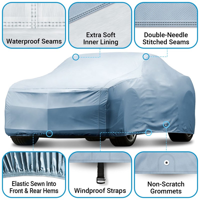 - 100% Windproof & Anti-theft: Make your Automobile Model Protects Against Wind & Theft with a Reveal Heavy Duty Strap to Keep the Cover in Place. The Elastic Hems are Also Used on the Front and Rear End