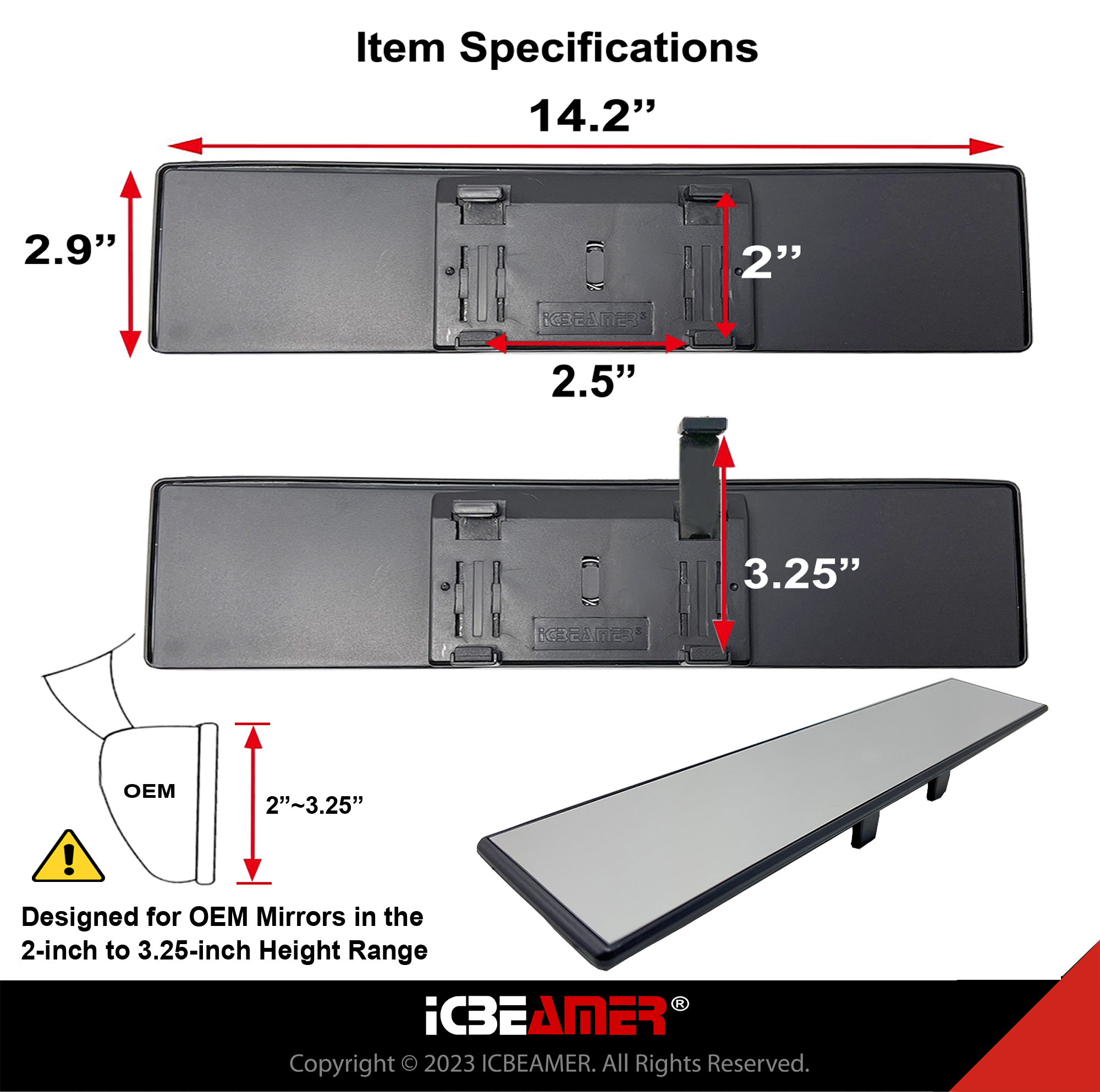 ICBEAMER 14.2 Flat Clear Eliminates blind spot Interior Rearview Mirror A270