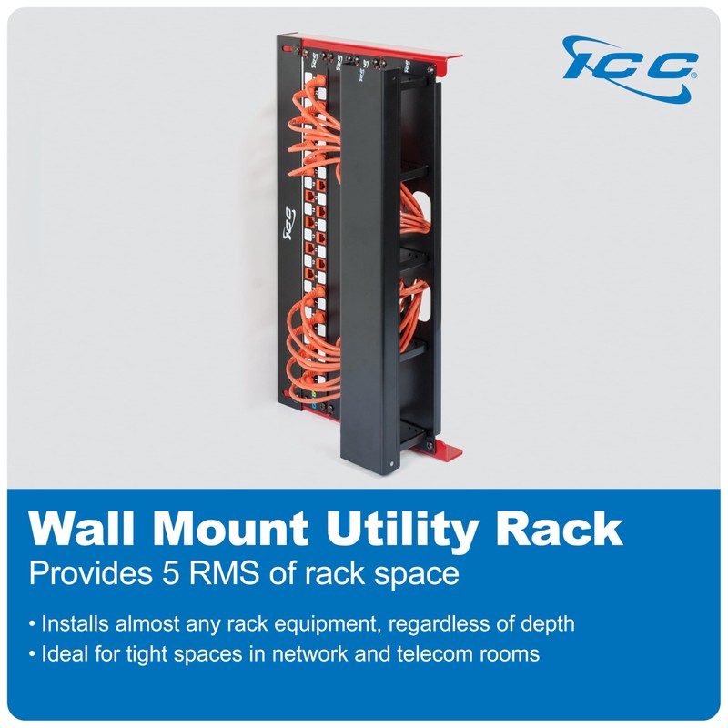 ICC Wall Mount Utility Rack, 5 RMS, Steel Construction for 19-Inch Rack Mount Equipment, Space-Saving Network Rack
