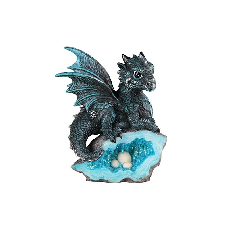 ICE ARMOR 5" H Blue Baby Dragon with Faux Faux Crystal Egg Nest Statue Figurine - Exquisitely Detailed Mythical Dragon Figurine Sculpture, Hand Painted Collectible Statue for Fantasy Enthusiasts