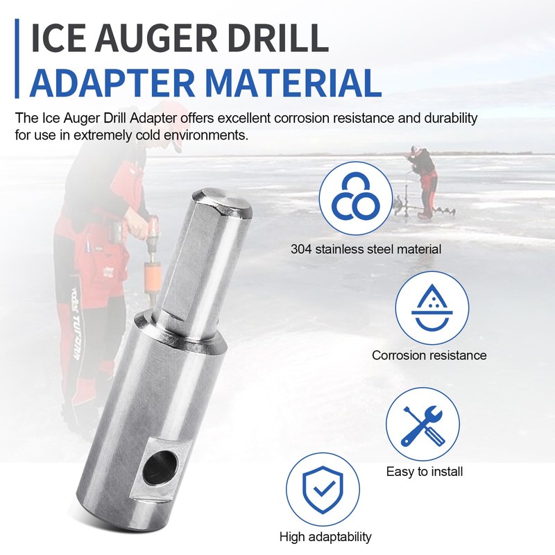 • 【Ice Auger Drill Adapter Material】The ice auger adapter for drill is made of high-quality 304 stainless steel, which has excellent corrosion resistance and durability and is suitable for use in extreme cold environments. The drill auger adapter is precision machined with a smooth surface for easy cleaning and maintenance.