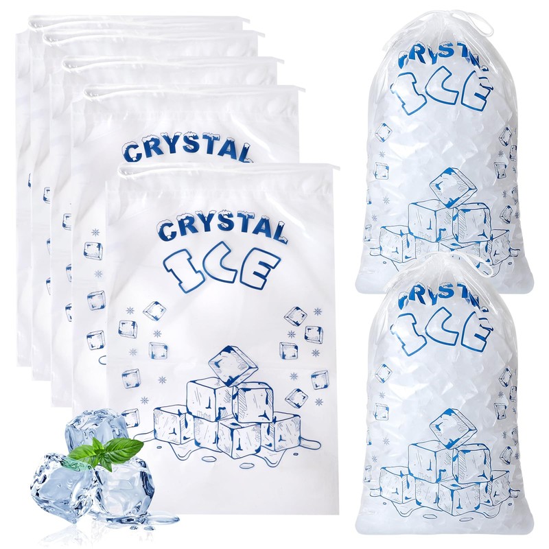Ice Bags 10 lb with Drawstring, 50 Count Ice Bags for Ice Machine, Heavy-Duty Reusable Ice Cube Bags, Portable Storage and Freezer Keeper