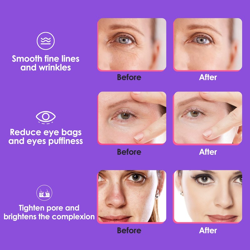 The benefits of this cooling facial massage are stimulating the nerves to stimulate facial tissue, tighten the skin, reduce pores, smoothing fine lines and wrinkles, especially reducing swelling on the face and eyes.