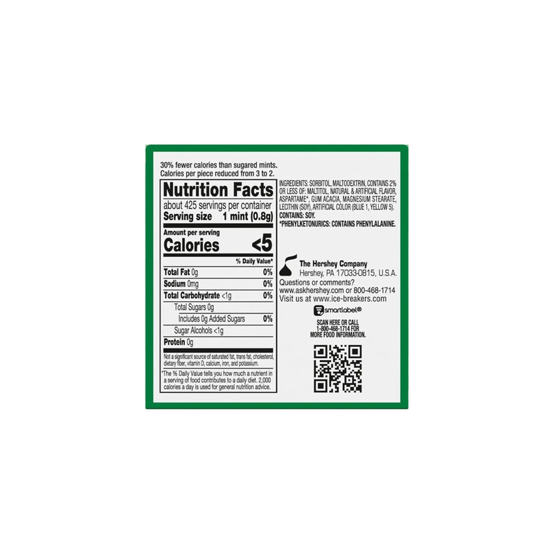 ICE BREAKERS spearmint flavored sugar free mints are packed with cooling crystals and placed in convenient tins so that you can keep your breath fresh and your taste buds busy no matter where the day takes you. These breath mints are the perfect size for popping into your mouth whenever you're ready for cool, refreshing flavor. Enjoy a delicious, classic spearmint flavor with no added sugar whenever your breath needs a little freshening up.