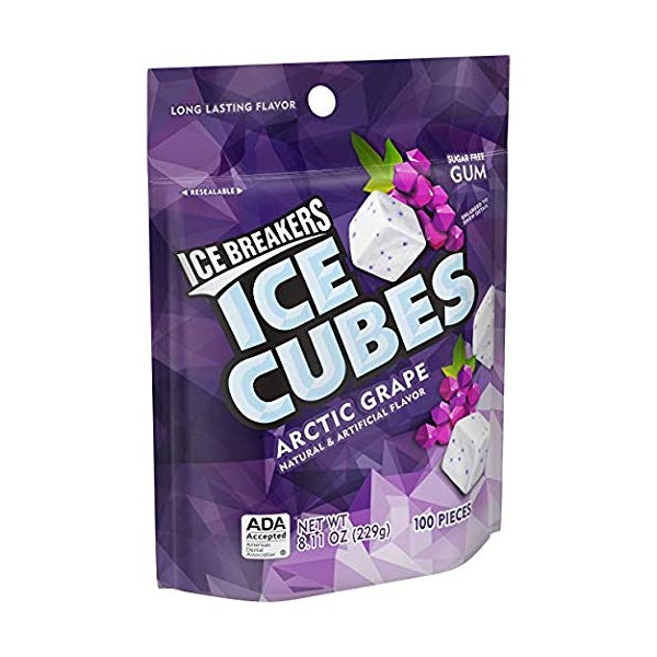 Ice Breakers Ice Cubes Goma sin azúcar, Uva Ártica, 8 oz (Paquete de 2)