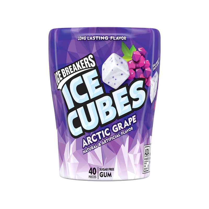 - Contains six (6) 3.24-ounce, 40-piece cube bottles filled with ICE BREAKERS ICE CUBES ARCTIC GRAPE Sugar Free Chewing Gum