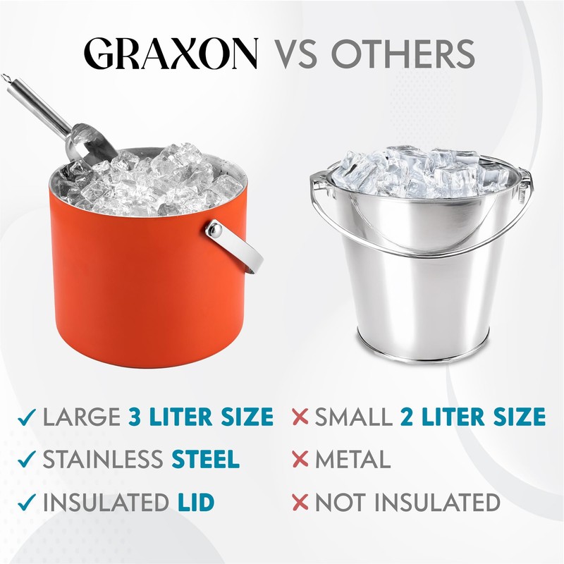 - Big 3 Liter Capacity: Big ice bucket size, spacious ice bucket holds plenty of ice, ensuring you have enough for cocktails. Fits a bottle of wine or champagne comfortably