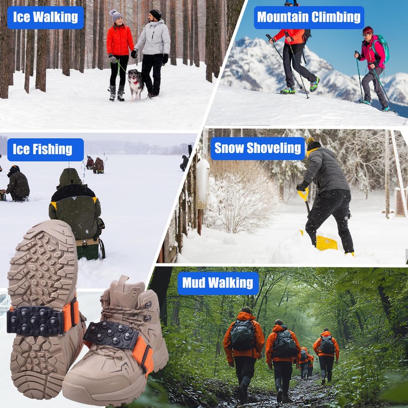 - 【WONDERFUL WINTER TOOL】The ice cleats are lightweight in 4 oz a pair,Just carry in pocket or backpack when you go out for ice fishing, dog walking, hiking, outside work.