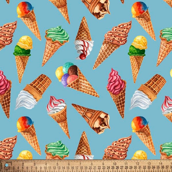 Ice Cream Cones Digital Cotton Fabric by The Yard
