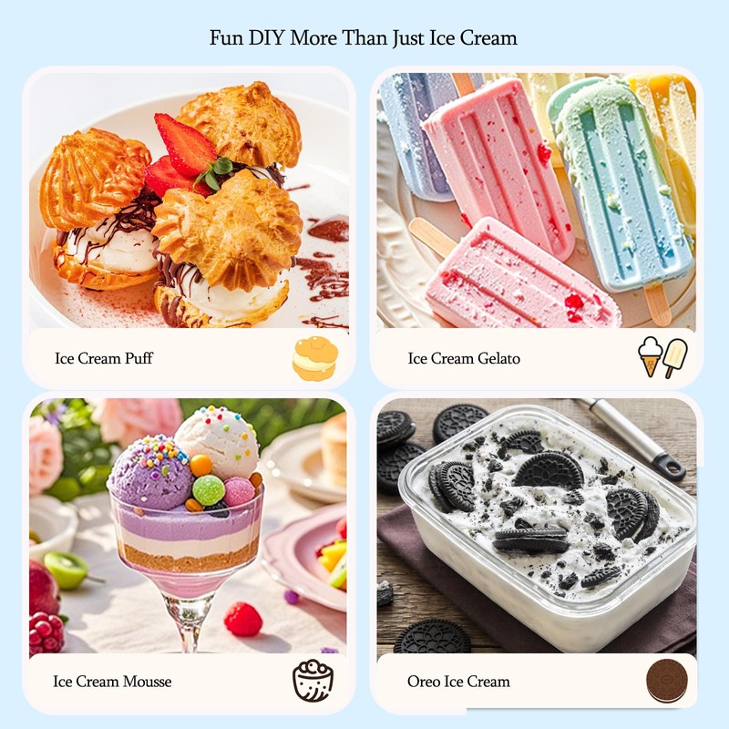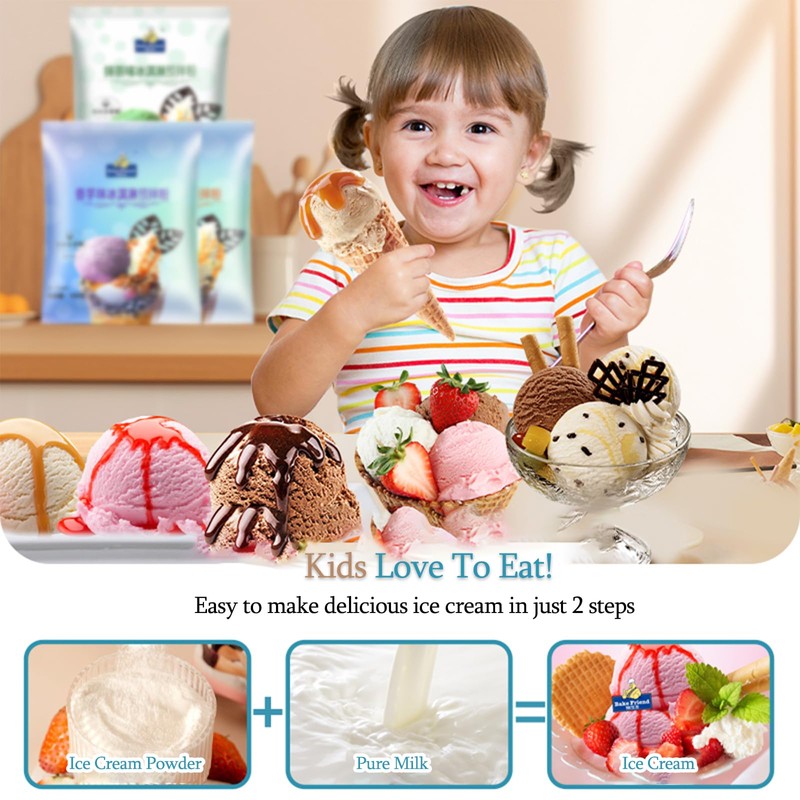 - Easy to Make: The process of making ice cream is very simple, add 200g of ice milk (or ice water) to 100g of powder - electric mixer whip for 3 minutes - pour into the mold, put it into the freezer for 4~6 hours