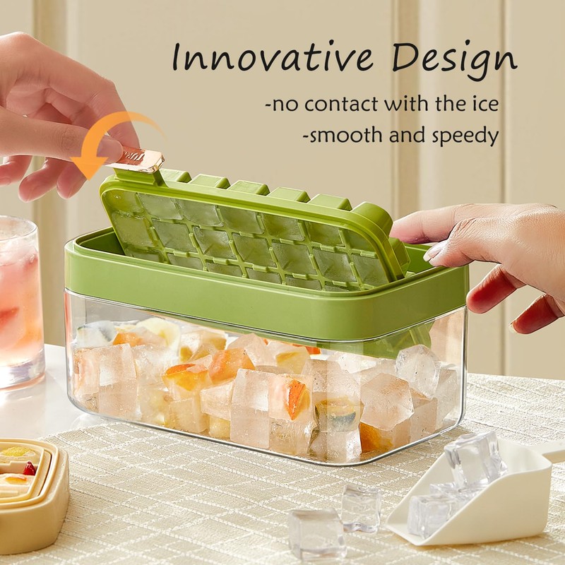 Ice Cube Tray with Lid and Bin, 2 Pack of Ice Trays with 56 Pcs Ice Cube Molds for Freezing (M, Green)