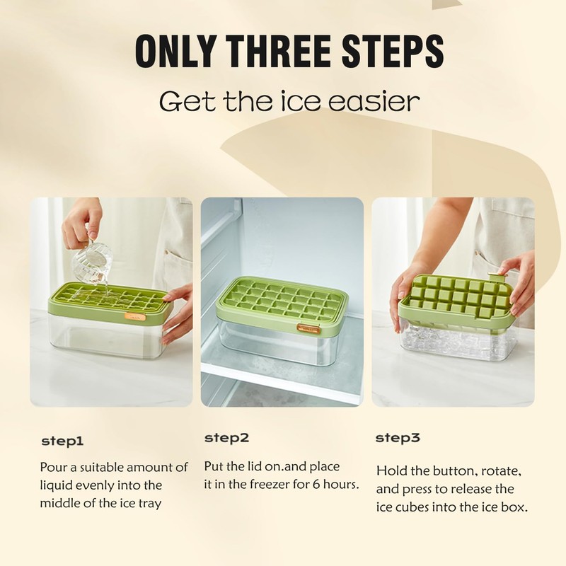 - 🍹[Easy to Operate] Please read the installation instructions on the picture before purchase. This ice cube tray imitates the manual twist ice tray by pressing the ice tray, making it easier and more hygienic for everyone to release ice cubes.