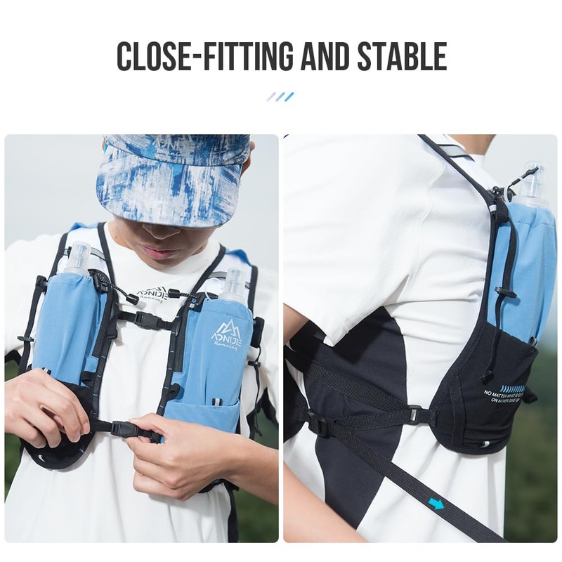 • 🏃‍♂️【Multiple Storage Pocket】The water backpack with 9 storage pockets, 2 YKK zipper pockets for store various necessities outdoor. The front chest is equipped with 2x250ML Soft Flask (not included) and 2 energy storage devices. 2 front chest external hangs to attach trekking poles and Tightening design on the back for hanging clothes for clothing are available, to travel light, let you run faster and farther.