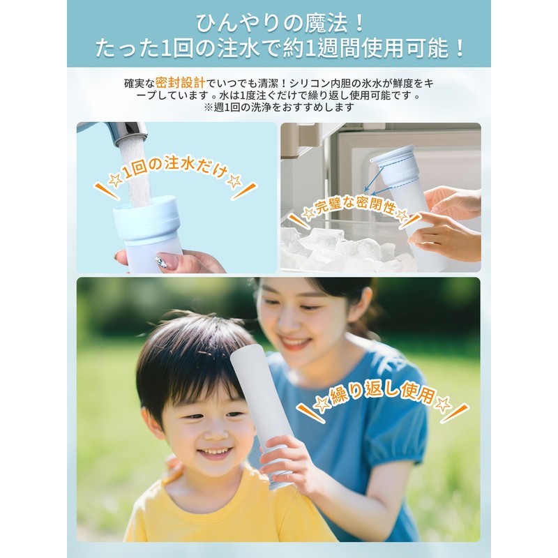 - (Easy to use with a single pouring water for a week, just fill the silicone intall with water once and chill in the freezer for about 2 hours, and enjoy a cool cooling effect. (*Do not freeze the same room with strong odors). The fully sealed design provides thorough protection for the inside of the garment, so there is no need to change water every day. The same water can be frozen repeatedly and used to significantly reduce the hassle of the hassle (*We recommend replacing water and cleaning the intollectual for about a week. During that time, please do not open the gull lid.)