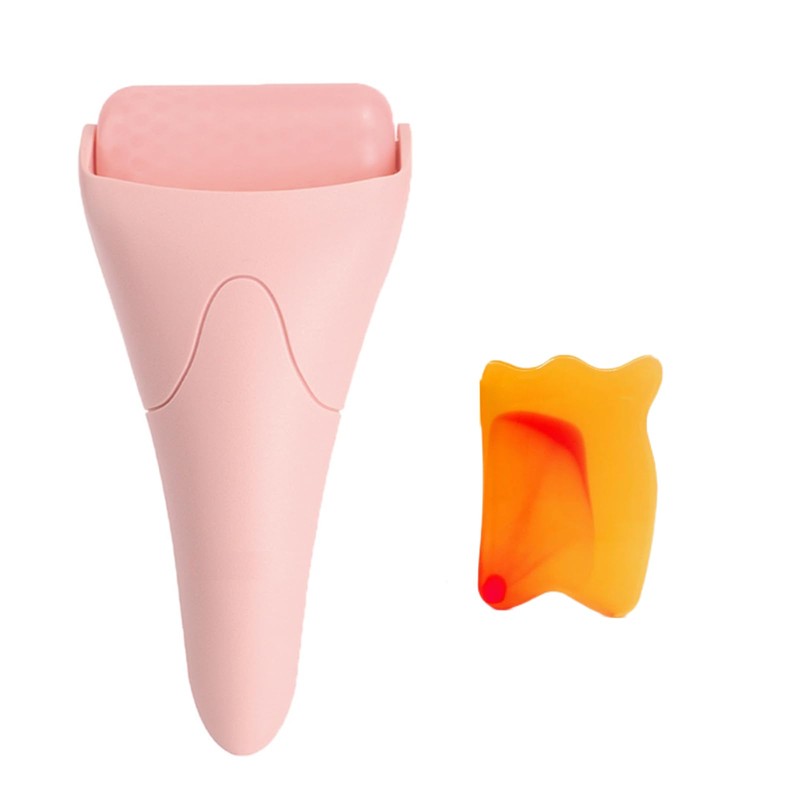 Ice Roller Face & Eyes, 2-in-1 Firming Massage, Reduces Puffiness and Wrinkles, Long Effect Cooling Heads (Pink)