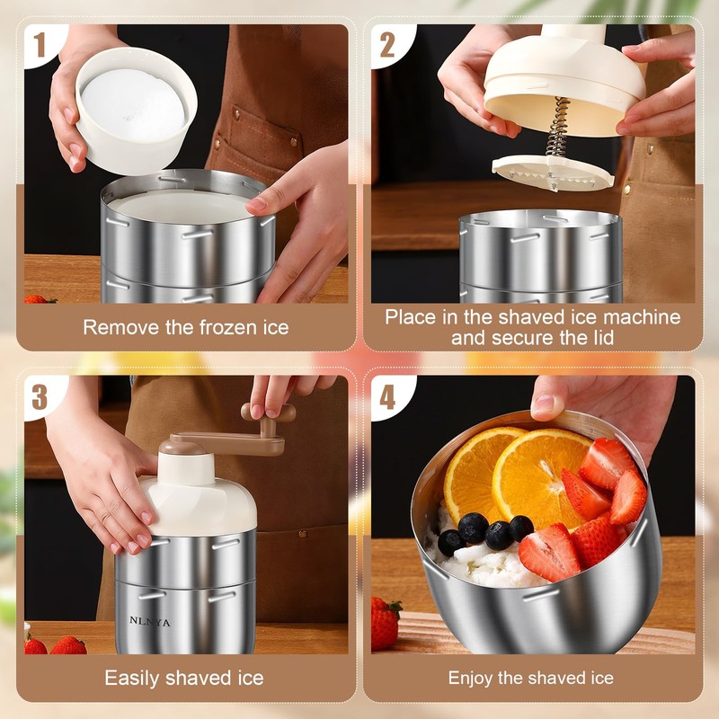 - All-stainless steel shaved ice tray: 1L stainless steel cup with a sturdy body that won't break under normal use.