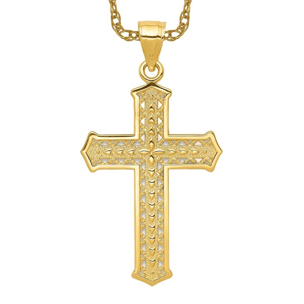 IceCarats 10K Solid Yellow Gold Holy Cross Necklace Religious Chain Pendant Jesus Christ Charm Only