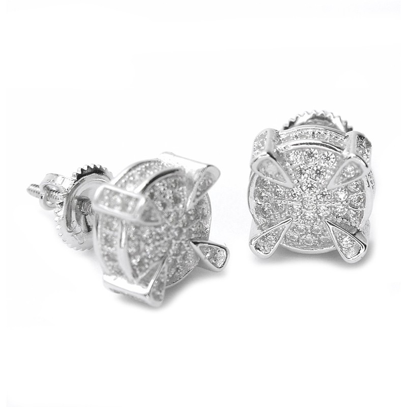 Iced Bling Silver Plated 3D Round Screw Back Stud Earrings BE 11619 S