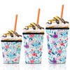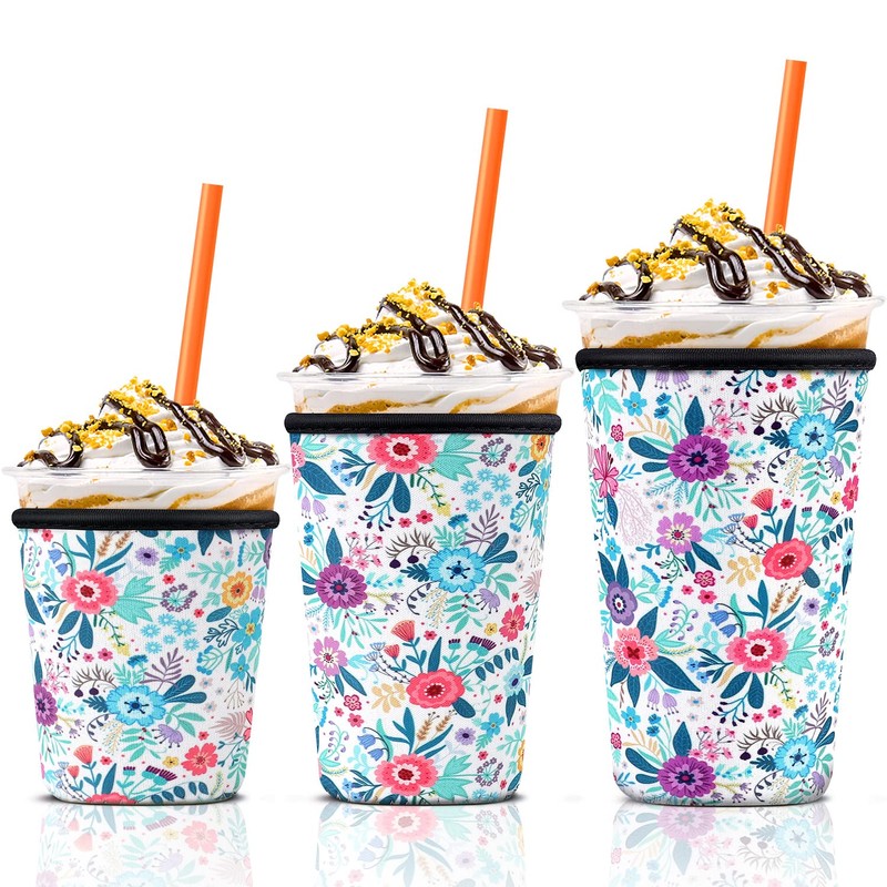 Iced Coffee Cup Sleeve for Large Sized Cups, Reusable Neoprene Iced Coffee Cup Holder for Hot Cold Drinks, Compatible with Starbucks, Dunkin Donuts, and More (3 PK Sm-Med-Lg, Blue Flower)