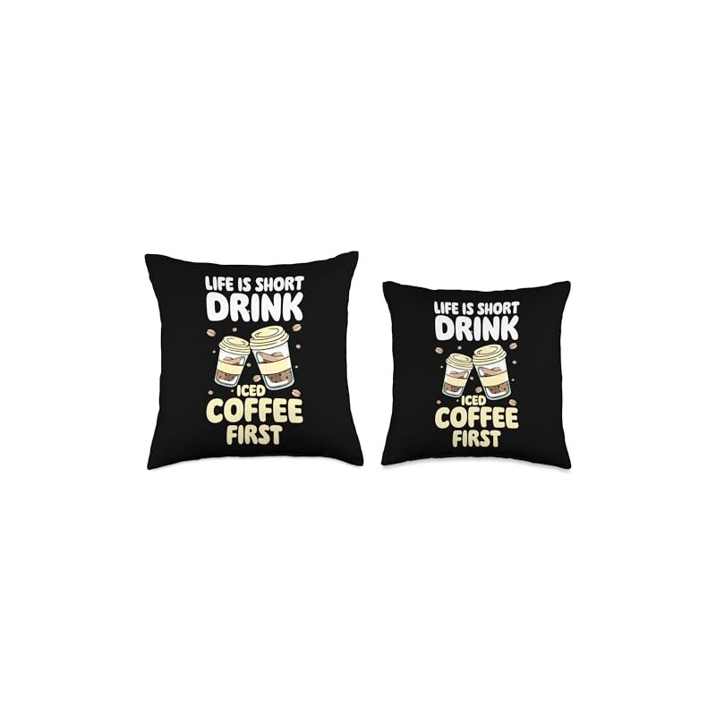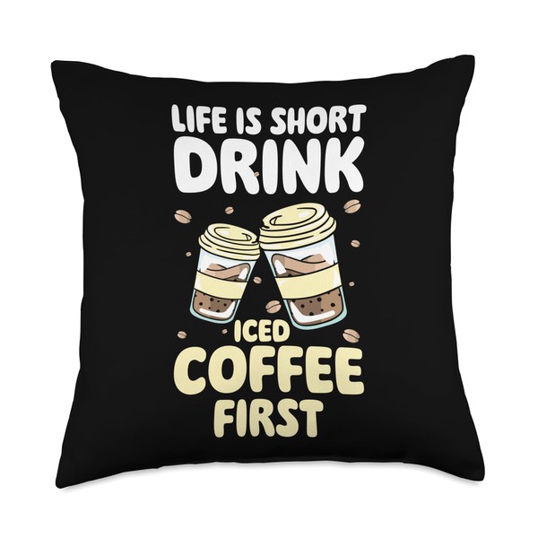 Iced Coffee Designs Cold Coffee Life is Short Drink Iced Coffee First Throw Pillow, 18x18, Multicolor