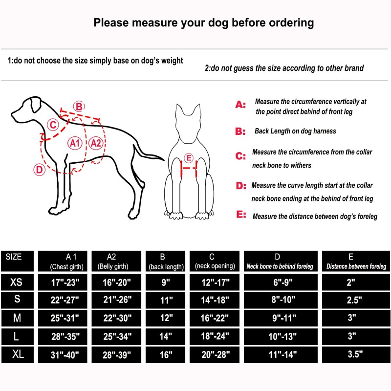 Harness Was Designed by Putting 3 Individual Components Together ,Offer 5 Position Adjustable ( Shoulder ,Chest,belly ) Make Sure This Harness is Fit Well to Your Dog,No Rub as well as Escape-Proof