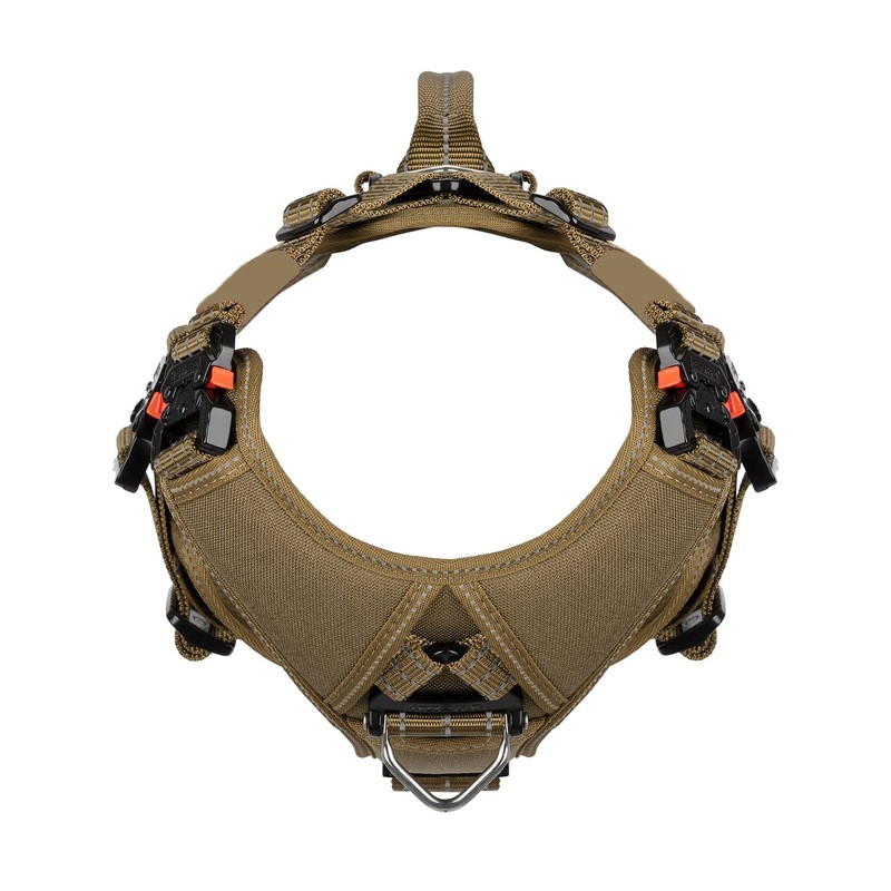 ICEFANG GN8 Tactical Dog Harness with 4X Metal Buckles for Medium Sized Dogs,Reflective in Training Walking K9 Vest,No-Pull Front Leash Clip,Adjustable Pet Harness (Brown, Medium (Pack of 1))