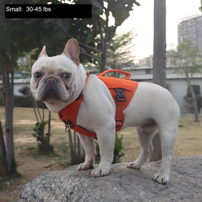 ICEFANG GN8 Tactical Dog Harness with 4X Metal Buckles for Small Sized Dogs,Reflective in Training Walking K9 Vest,No-Pull Front Leash Clip,Adjustable Pet Harness (Orange, Small (Pack of 1))
