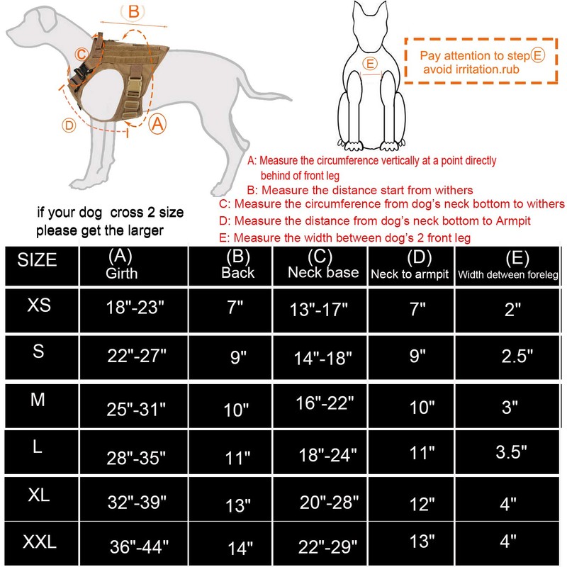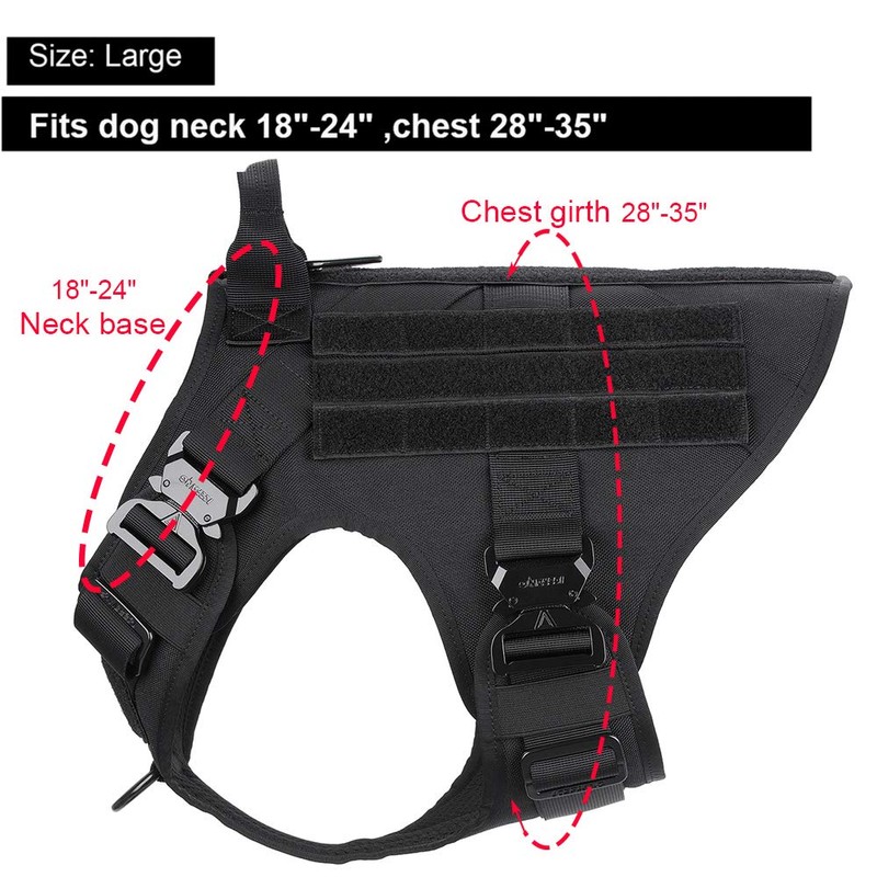 - [Tips & Care instruction]:1:This Harness is not to be used with a tie out ; Do not put it on your dog unsupervised ; 2,Please refer to our size chart,Make sure match up your dog's measurement ,Do not choose the size base on dog's weight or guess ; 3:Burn and solidified the end of strap if necessary ,Make Sure the end of strap is not fraying; 4: Washing: Wash hands with detergent,rinse with clean water and dry it