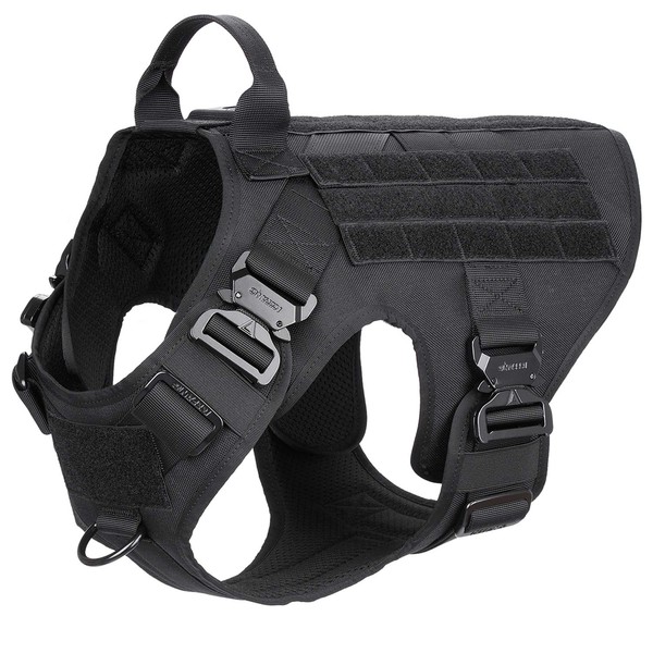 ICEFANG Tactical Dog Harness with 4X Metal Buckle,Dog MOLLE Vest with Handle,No Pulling Front Clip ,Hook and Loop Panel for Dog Custom Patch