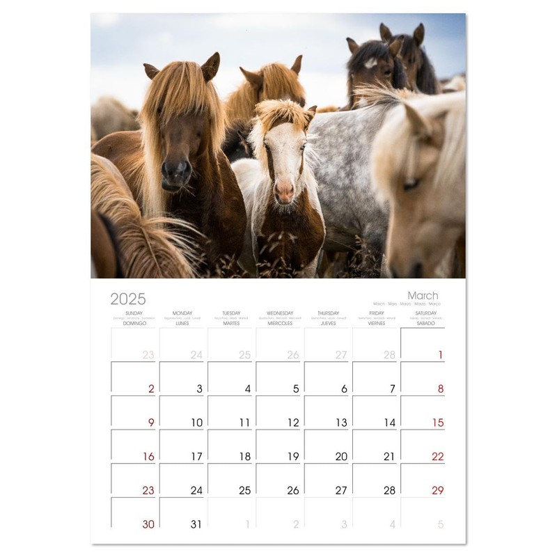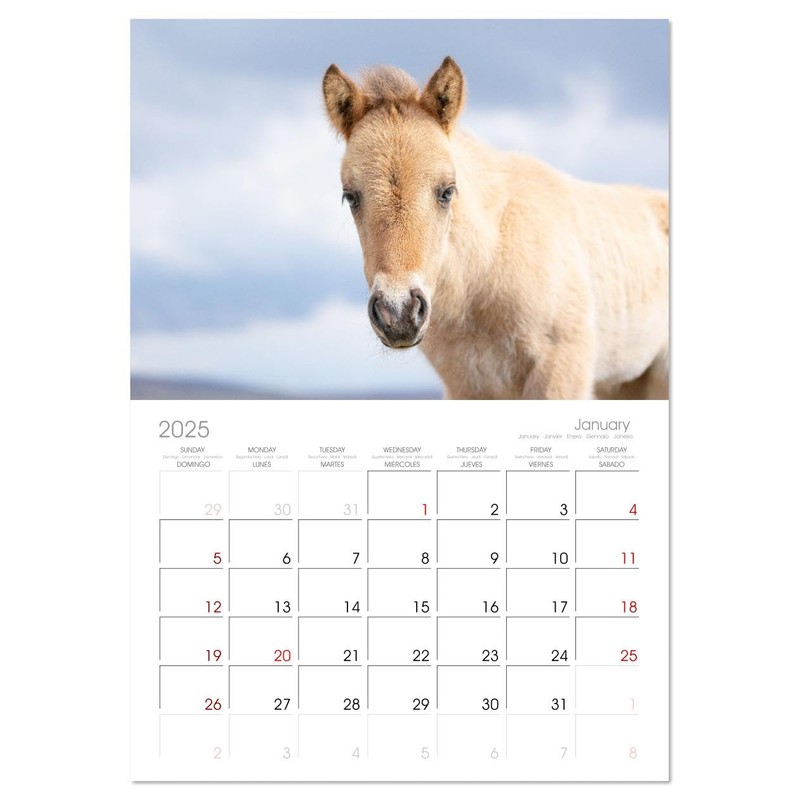 - DESIGN - 12 unique pictures, large monthly grid for planning with dates in 5 languages, including Spanish and French. 14 Month Calendar (Jan 2025 - Feb 2026).