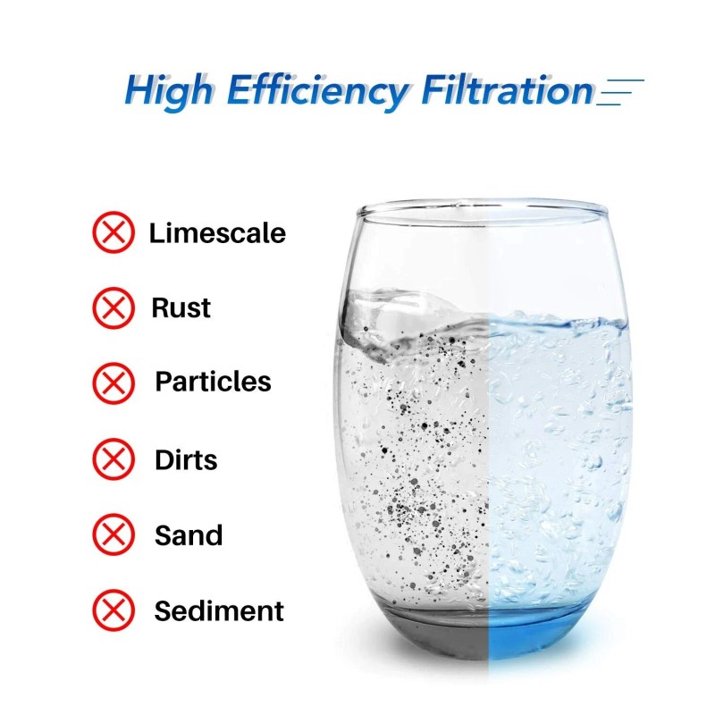 - Reduces sediment, rust, scale, dirt, sand, silt, and aesthetic chlorine taste and odors.