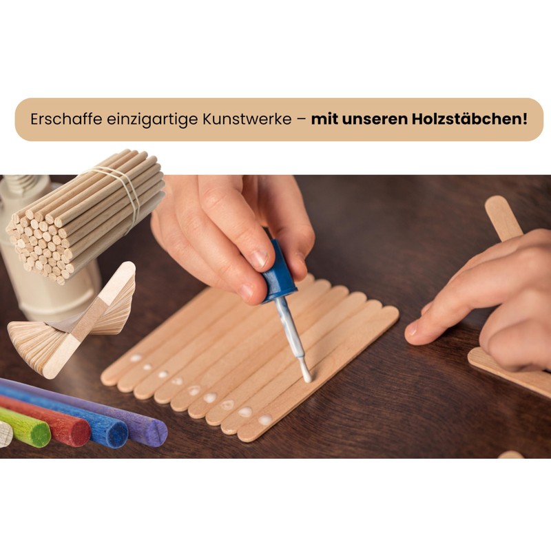 Let your creativity run wild. Our wooden sticks are the perfect basis for your individual projects, whether for professional use or for DIY ideas in the family circle. Visit our store to discover the different sizes and options and take your craft projects to the next level!