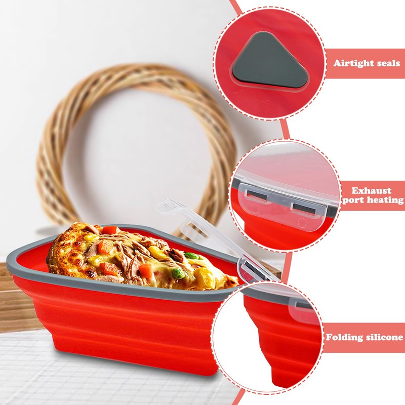 1.Made of food-grade silicone, this pizza box is bisphenol A-free, odor-free, leak-proof, non-stick, safe for kids and adults to use, microwave and dishwasher safe.