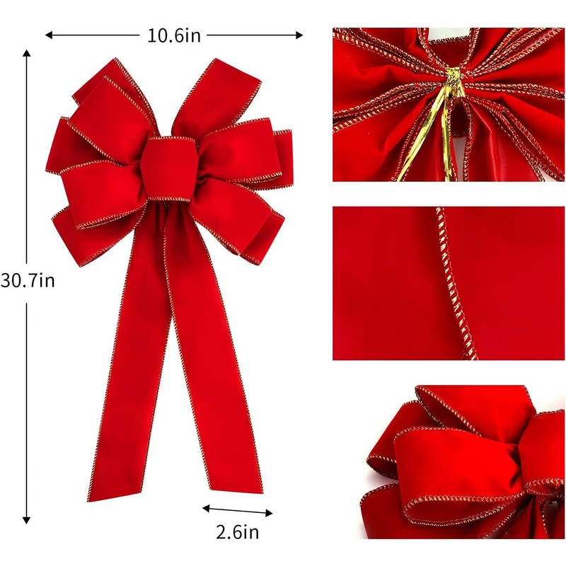 - High Quality Material: These decorative red bows are made of good quality velvet material with gold wired edge, lightweight and soft, bright color, nice gloss, no fading, durable and reusable, not easy to wrinkle after ironing, ensuring the integrity and beauty.