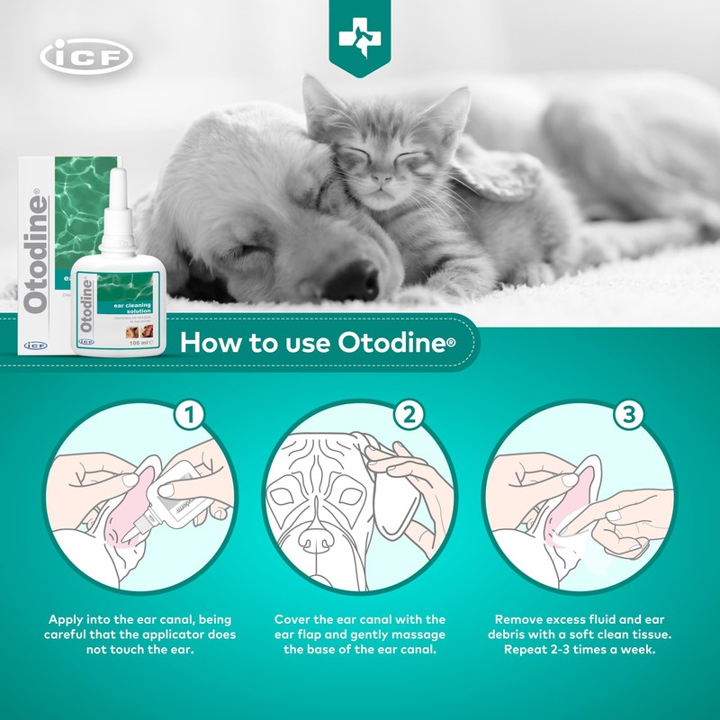 ICF Otodine | Cat & Dog Ear Cleaner Solution | Dog Ear Drops to Stop Wax Build Up, Head Shaking, Discomfort, Ear Odour & Scratching | 100ml