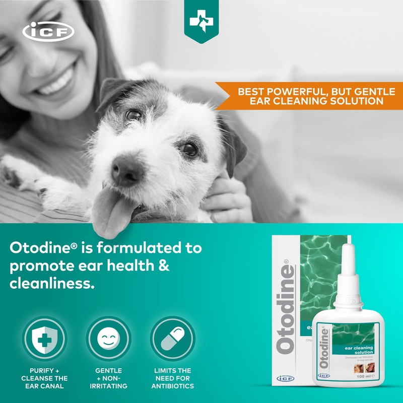 - OTODINE - An ear cleaning solution with a patented formula. Incorporating the dual action of Chlorhexidine Digluconate and TrisEDTA. The two most effective antibacterial agents provide your beloved pet with clean, healthy, happy ears.