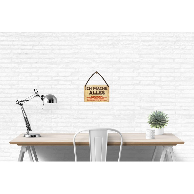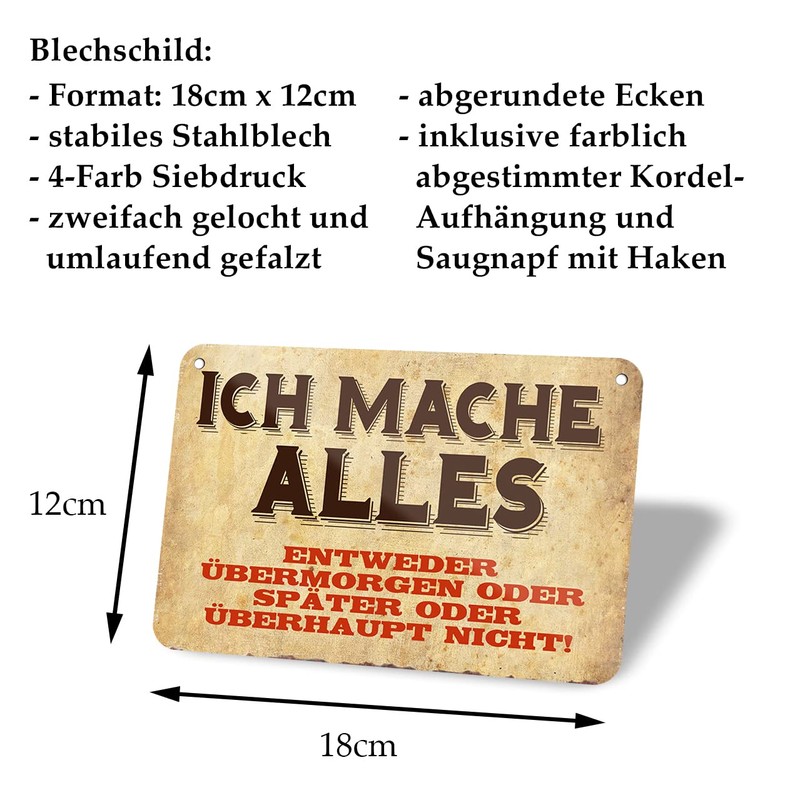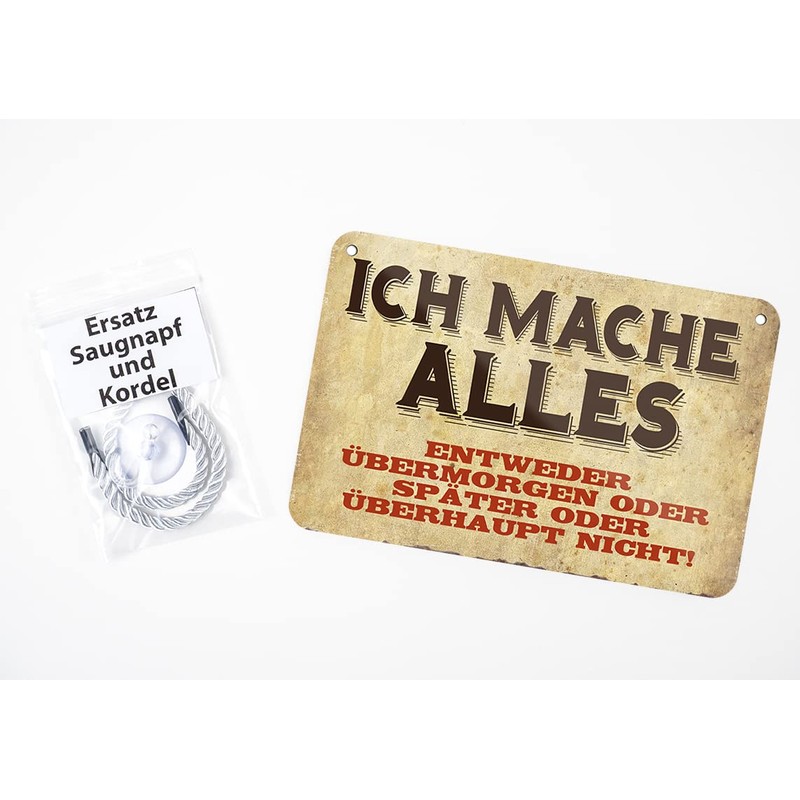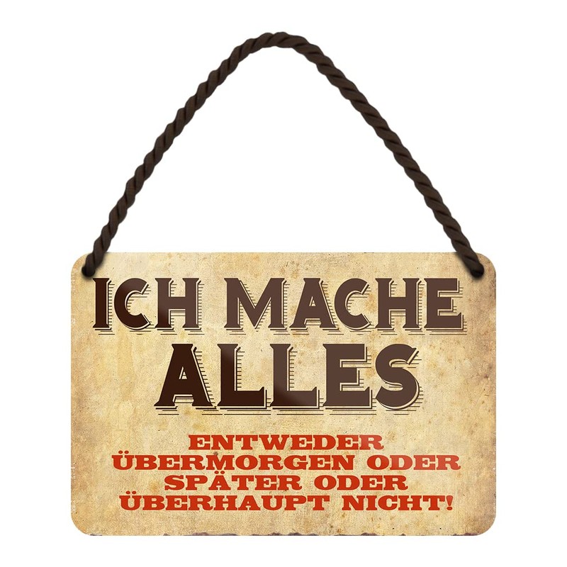 Ich Mache Alles - Funny Metal Sign with Funny Saying - Hanging Sign with Cord and Suction Cup - Stylish Decoration Workplace Office Desk - for Friends of Procrastination - 18 x 12 cm