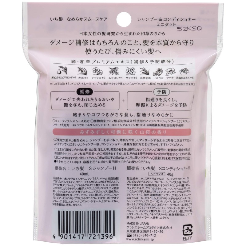 Ichi-Hair Smooth Care Shampoo & Conditioner Mini Set 40mL + 40g