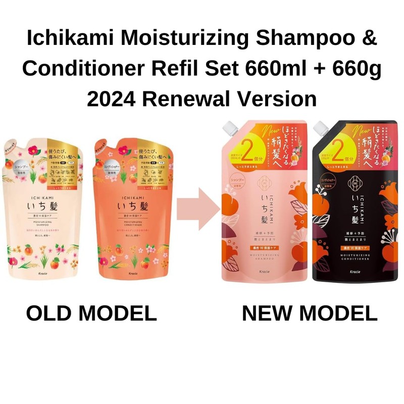 Ichi-kami Moisturizing Hair Wash & Conditioner Refil Set 660ml And 660g 2024 Renewal Version